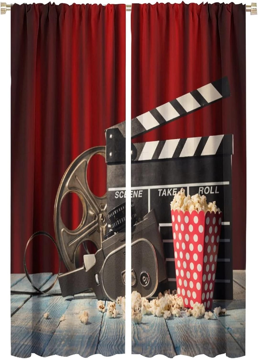 This Abstract Movie Theater Themes Curtains can block out 85%-99% sunlight and UV ray ( Darker colors work better), perfect for late sleepers and afternoon naps. Our energy saving curtains insulate against summer heat and winter chill to balance your room temperature, reduce outside noise .This Abstract Movie Theater Themes Curtains liven up your indoor or outdoor spaces with a sense of airiness and beauty.These Abstract Movie Theater Themes Curtains are suitable for the bedroom, living room, dining room, infant room, kids room, office or other public place.Material:Polyester high quality fabric curtains, warm and interesting, beautifully designed.Kindly Remind:- Don't use sharp things scratching curtains.- For proper fullness panels should slightly larger than the window size the width of your window.- 24 Hours customer support.- As different computers display colors differently, the color of the actual item may vary slightly from the above images.