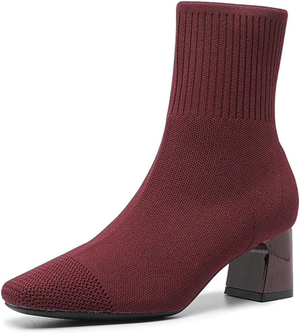 Ankle Boots for Women Dressy Comfy Knit Sock Booties Square Toe Chunky Heel Slip on Elastic Fall Booties