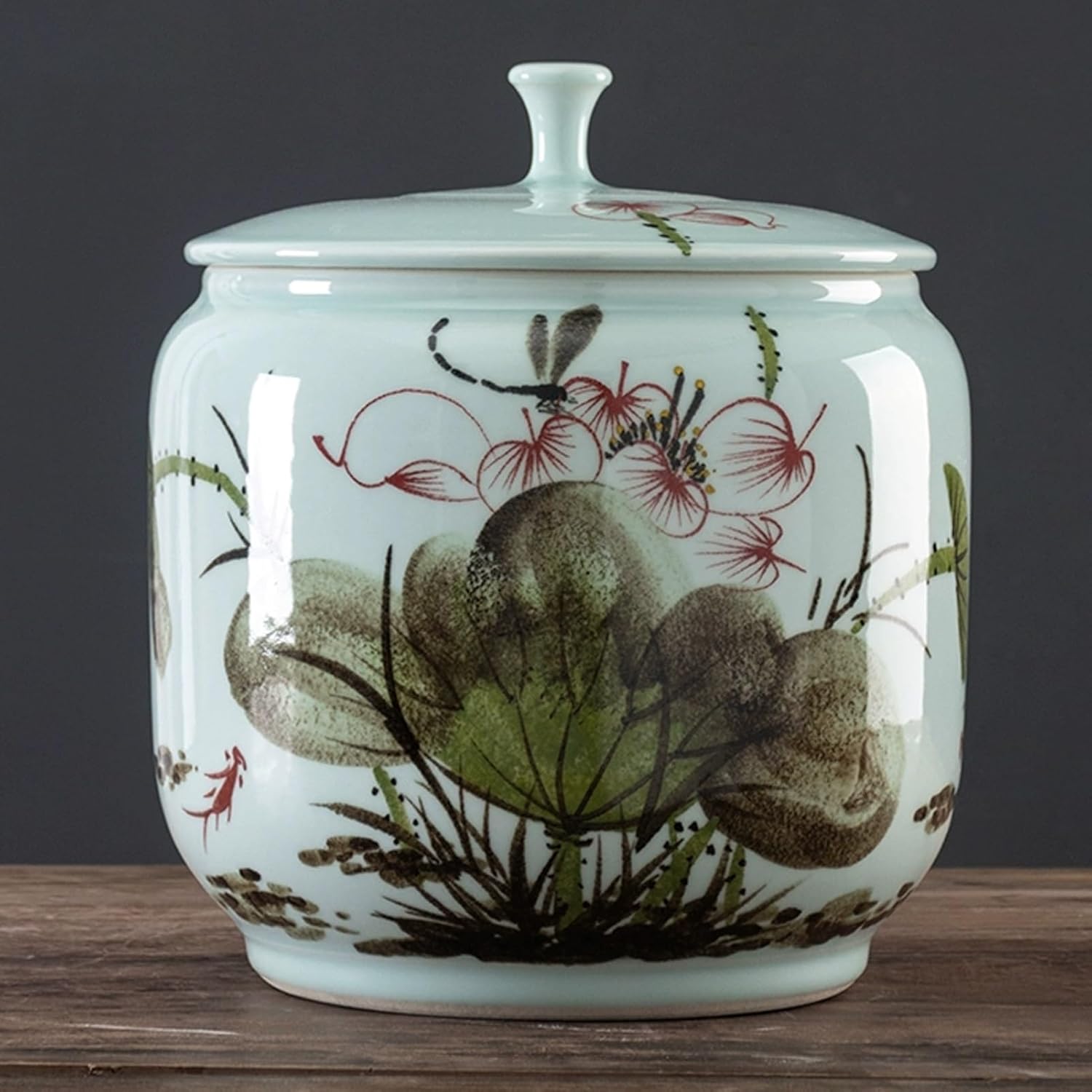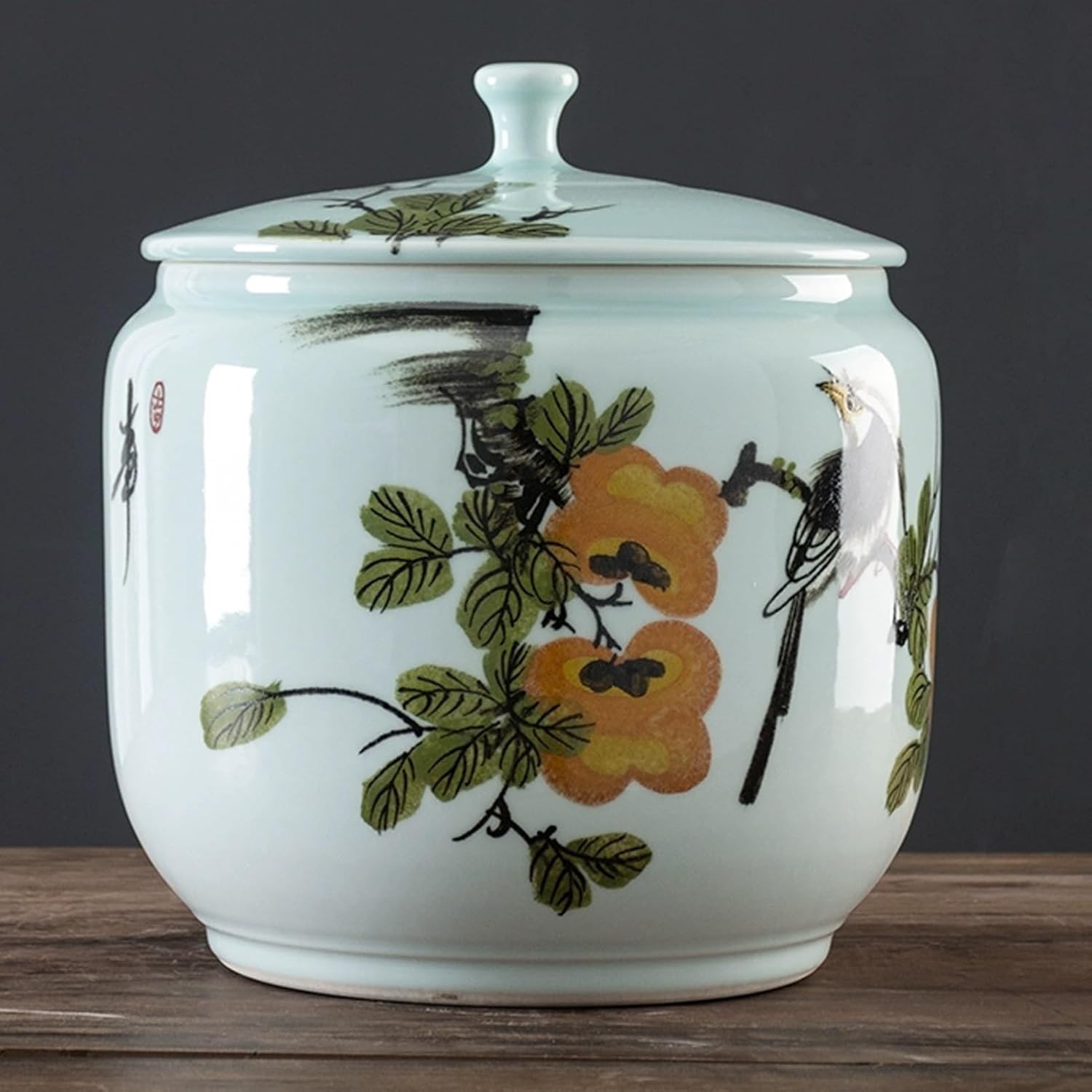 This food storage jar not only can it store rice, grains, flour, tea, etc, it is also a good home decoration. Life is beautiful because of its meticulousness.Large-capacity rice storage barrels can reduce the kitchen area and save space.JKGHK large-capacity kitchen grain storage jar is equipped with a portable handle design. The handle part has been carefully polished and the design is ergonomic to ensure easy access and non-slip when used.SpecificationsName: Rice Storage ContainerMaterial: CeramicCapacity: 10kg, 12.5kgApplicable scenarios: kitchen, living room, grocery store, café, bar, restaurant, schoolStorage method: Store in a cool dry placePackage includes:1 x Ceramic Rice Storage JarNote: 1. This product only includes the rice container; other products are not included.2. We measure manually, there may be an error of 1-3 cm, please refer to the actual product.3. During transportation, the packaging is very tight, so there may be a damp smell. Please keep it dry and well-ventilated.4. The product images are taken from the actual items. Due to lighting, photography, and monitor settings, the product color may slightly differ. Please refer to the actual product.
