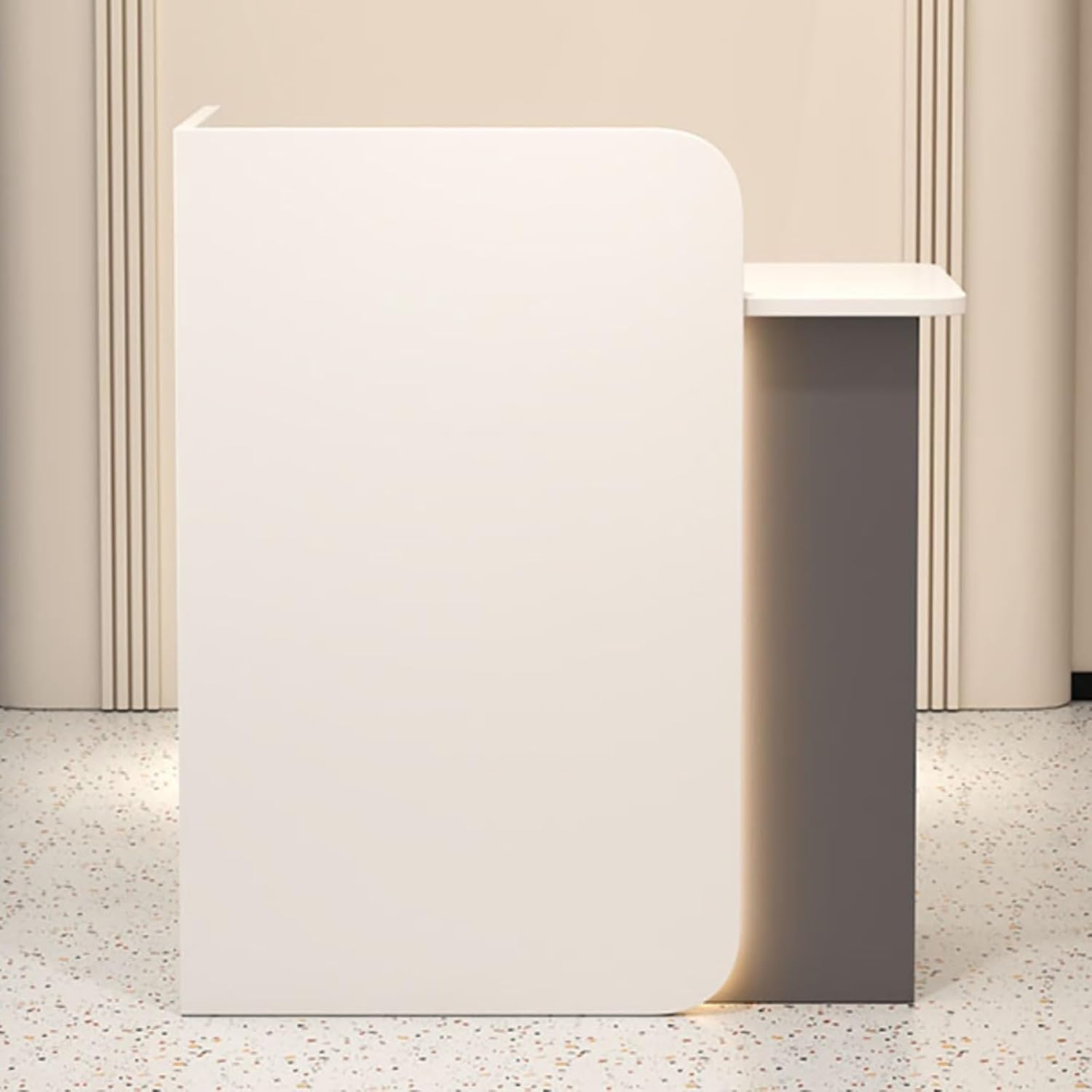 Reception Desk with LED Lights,Retail Counter Reception Counter Table with Drawers,Modern Reception Desk,with Lockable Drawers,Modern Front Desk Reception Desk is not only a functional working space - it is a stellar centerpiece crafted to transform your lobby, beauty salon, clinic, restaurant, or office space.Reception Desk with LED Lights for Lobby Beauty SalonThe Front Counter Desk is equipped with an LED light bar.Different lighting colors can be easily matched to different venues, matching different lighting colors to different décor styles. High-Quality of HardwareWe take your privacy and property security very seriously. Now you can enjoy a more private work area, provides an added level of security while creating a dignified look.Stream-line design with smooth veneer surface, this reception desk highly shows modernization and elegance for welcoming customers and clients.Simple and clean design concept effectively organize your work space, gives an aesthetic look.including drawer slides, cabinet door aisle chains, and keyboard slides. Opening and closing the tray smoothly !Sufficient Storage SpaceThe spacious desktop with keyboard tray has enough room for a computer, cash register and even promotional materials. Whether it's a lobby, salon, clinic, restaurant or office space, it creates a stunning atmosphere!Material: Engineered Wood, MDFFocus on Details for Good ProductsReception DeskHigh-quality Metal RailThe Reception Counter Table has 1 drawers, which are equiped with metal slides. Open and close drawers smoothly.Reception DeskSoft Open & Close HingesHigh-quality hardware is used for the Front Counter Desk to make opening and closing doors quieter and easier.Notice:1. Note: Due to the particularity of the furniture, there will be slight errors in the finished product, which is normal. The data is for reference only and must be based