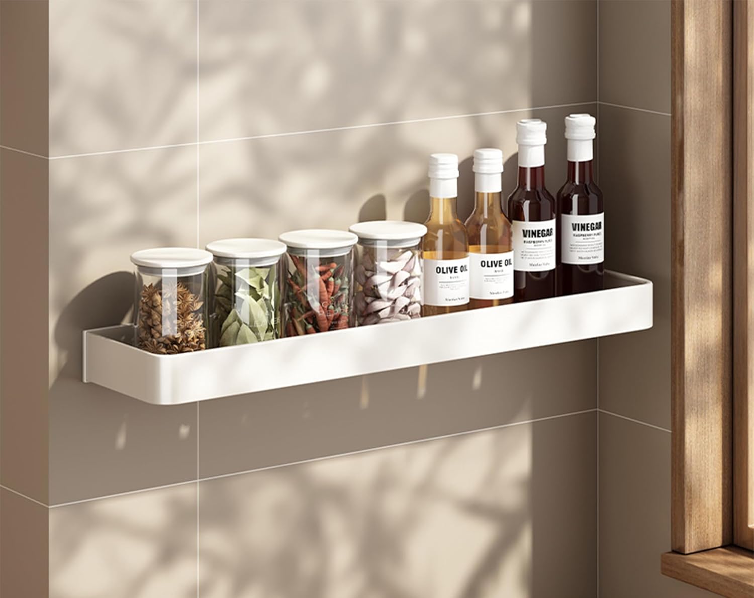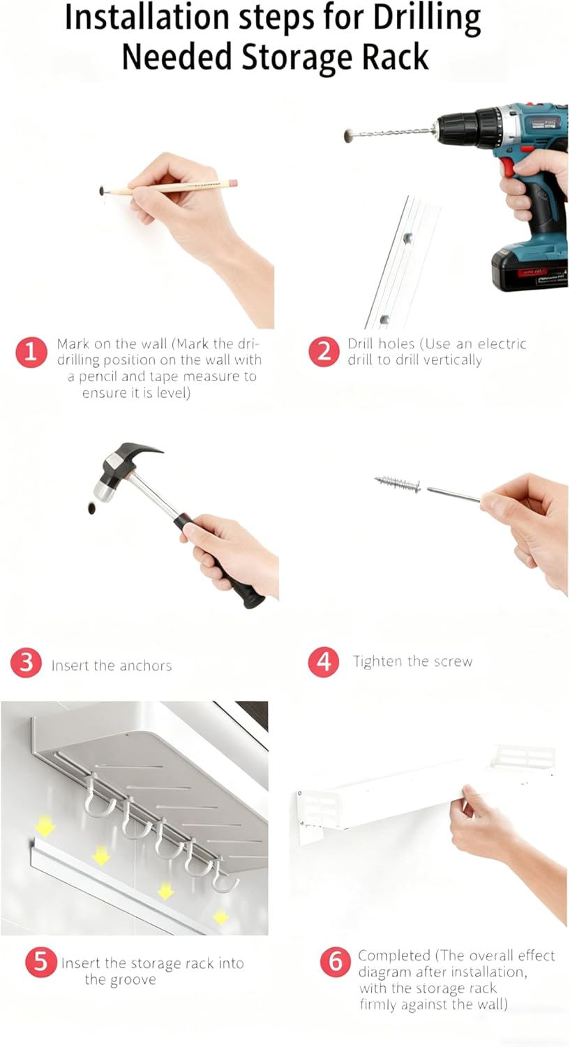 Declutter Your Kitchen & Maximize Space with SEIDO Spice Rack!Maximize your kitchen or bathroom space with our premium Space Aluminum Wall Shelf! Designed for modern homes, this 2-tier organizer combines a flat storage shelf, 5 multi-purpose hooks, and 1 hanging bar.Why You'll Love SEIDO:Effortless Setup: Peel, stick, and organize! Our industrial-strength adhesive strips handle heavy loads without drilling. Perfect for rentals!Smart Dual Layout: Use the single shelf near your stove for spices, and mount the hook-combo shelf by the sink for towels and utensils.Engineered for Daily Use: Water-resistant surface wipes clean; reinforced hooks hold pots, pans, and bulky tools securely.Transform Clutter into Style: Replace messy counter piles with a streamlined, Instagram-worthy kitchen display.Perfect For: Renters & homeowners seeking damage-free storage Small apartment kitchens with limited counter space Organizing cleaning supplies under bathroom sinks Hanging coffee mugs near brew stationsSpecs:Material: Space AluminumFinish: WhiteInstallation Type: Wall MountStructure: 1x Aluminum Shelf + Hooks + Towel BarAvailable in 4 Lengths: 30cm | 40cm | 50cm | 60cm – Measure your space before ordering!Experience the joy of a clutter-free kitchen with our kitchen utensil holder!