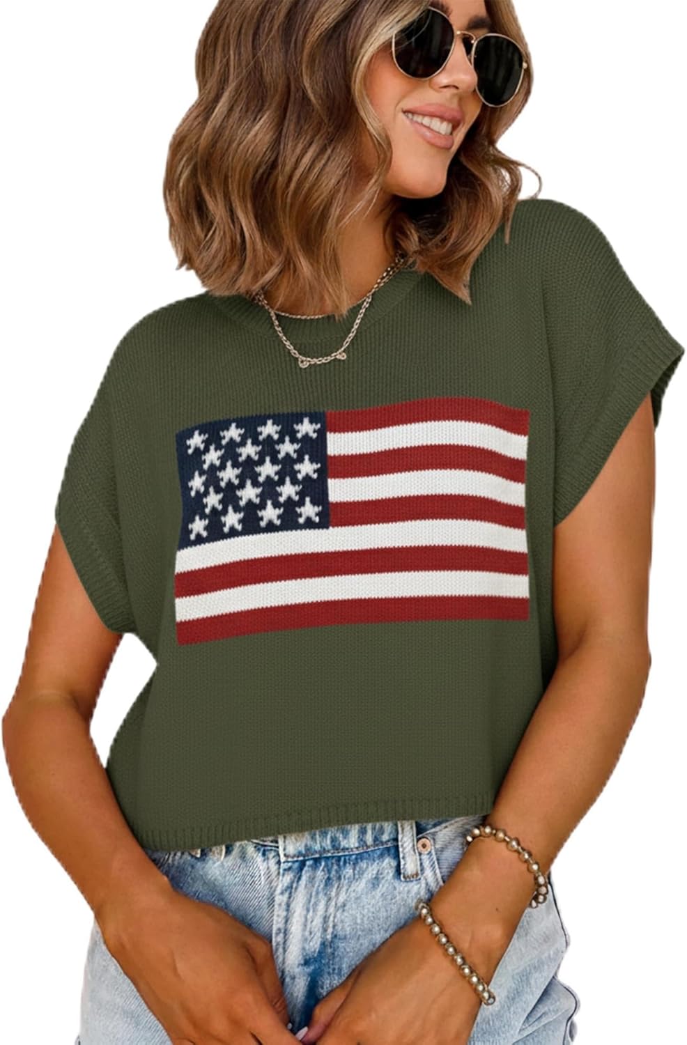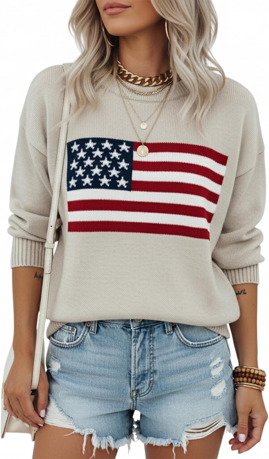 Celebrate your patriotic spirit with the Grewear Women’s American Flag Pattern Sweater — a stylish blend of comfort and classic Americana. Crafted from soft lightweight acrylic knit, this pullover is perfect for 4th of July events, fireworks, BBQs, or everyday casual wear. The breathable fabric keeps you cozy yet cool, making it ideal for year-round comfort and effortless layering. Featuring a relaxed silhouette and round neckline, this long sleeve sweater offers an easy, flattering fit for all body types. The ribbed cuffs and hem maintain structure while adding a refined touch. Designed with a knitted American flag pattern instead of printed graphics, it brings texture and authenticity to your look — a timeless expression of USA pride that pairs perfectly with jeans, shorts, or leggings. Whether celebrating Independence Day, Memorial Day, or simply showing love for your country, this patriotic sweater brings festive energy without sacrificing everyday versatility. The lightweight knit construction makes it comfortable for both indoor gatherings and outdoor festivities. Its simple yet modern style lets you transition effortlessly from casual daytime to cool summer evenings. Available in sizes XS to 3XL, the Grewear USA Flag Sweater ensures a comfortable and confident fit for every woman. It’s a perfect holiday gift idea for moms, wives, or friends who appreciate cozy fashion with meaning. Pair it with denim and sneakers for a relaxed outfit or dress it up with boots for a chic seasonal look. Easy to care for — hand wash or machine wash cold on gentle cycle, then lay flat to dry. Avoid bleach to preserve the softness and vibrant colors. The Grewear American Flag Sweater combines quality craftsmanship, breathable comfort, and patriotic charm — making it a must-have for every proud American woman’s wardrobe.