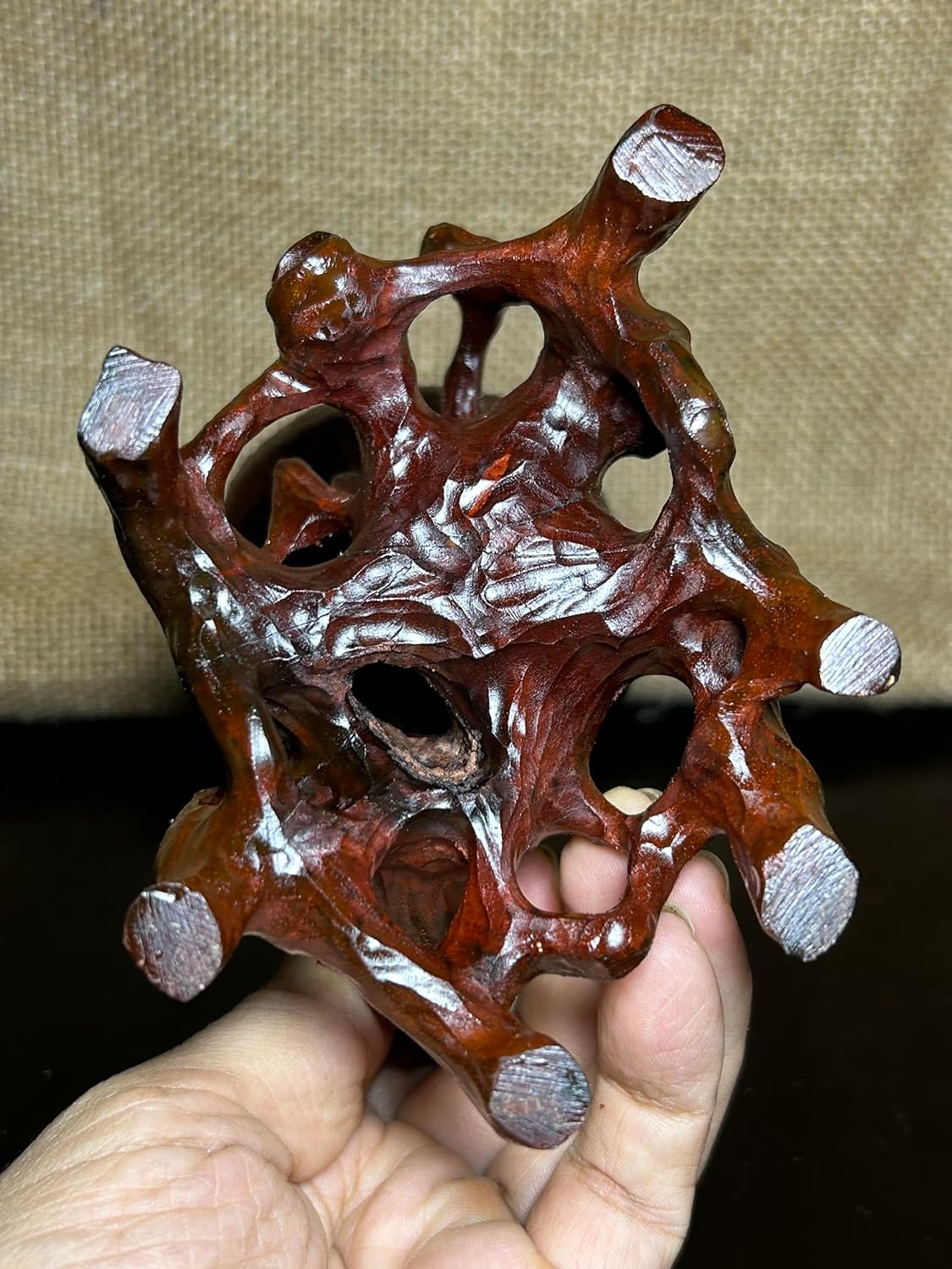 Hello! This is a wooden stand made of Padauk wood, the blank wood is taken from the core of an old Padauk tree so it is very heavy and hard.Natural wood color, Root stand is hand-carved from a wooden block. It has an Asian style, so it is very suitable for displaying a bonsai pot, an ancient statue, an antique flower pot, Or you can use it to decorate your home, Use product photography... Its deep tones will highlight the objects placed on it and enhance the value and beauty of that object. It has a gentle natural fragrance that helps with relaxation. wooden root stand with Size: 4.2 " (high)x 4.5"x 3.8" (inch), surface size: 3" x 3". Our store has just opened so there are not many feedbacks yet, you are one of the first buyers, please don't let that affect your having a great product. Follow us as we will update a lot of unique pots in the future, including antique pots. Thank you very much! --- Note: When you receive this wooden stand, it goes half way around the world to get to you, so if you have any problems during transportation, please message me first. We will do everything to bring your satisfaction 100%. --- You can refer to many types of bonsai tree pots such as: Bonsai pot, Ceramic bonsai pot, Large bonsai pot, Handmade bonsai pot, Vintage bonsai pot, Blue bonsai pot, Japanese bonsai pot, Small bonsai pot, Oval bonsai pot, Rectangular bonsai pot, Black bonsai pot, Glazed bonsai pot, Square bonsai pot, Purple bonsai pot, Round bonsai pot, Shallow bonsai pot, Red bonsai pot, Bonsai training pot, Outdoor bonsai pot,Traditional bonsai pot. wooden display, stand display…at our shop. Thanks you!